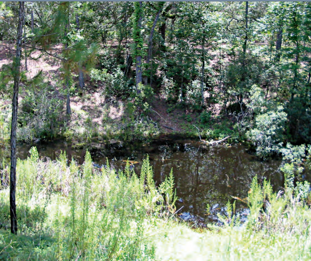 An impacted wetland where a sinkhole developed (Photo source: Dan Duerr, USGS) |